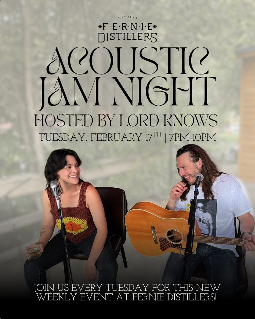 Acoustic Jam Night kicks off Tuesday, Feb 17th and runs every Tuesday at Fernie Distillers, hosted by local favourites - Lord Knows.