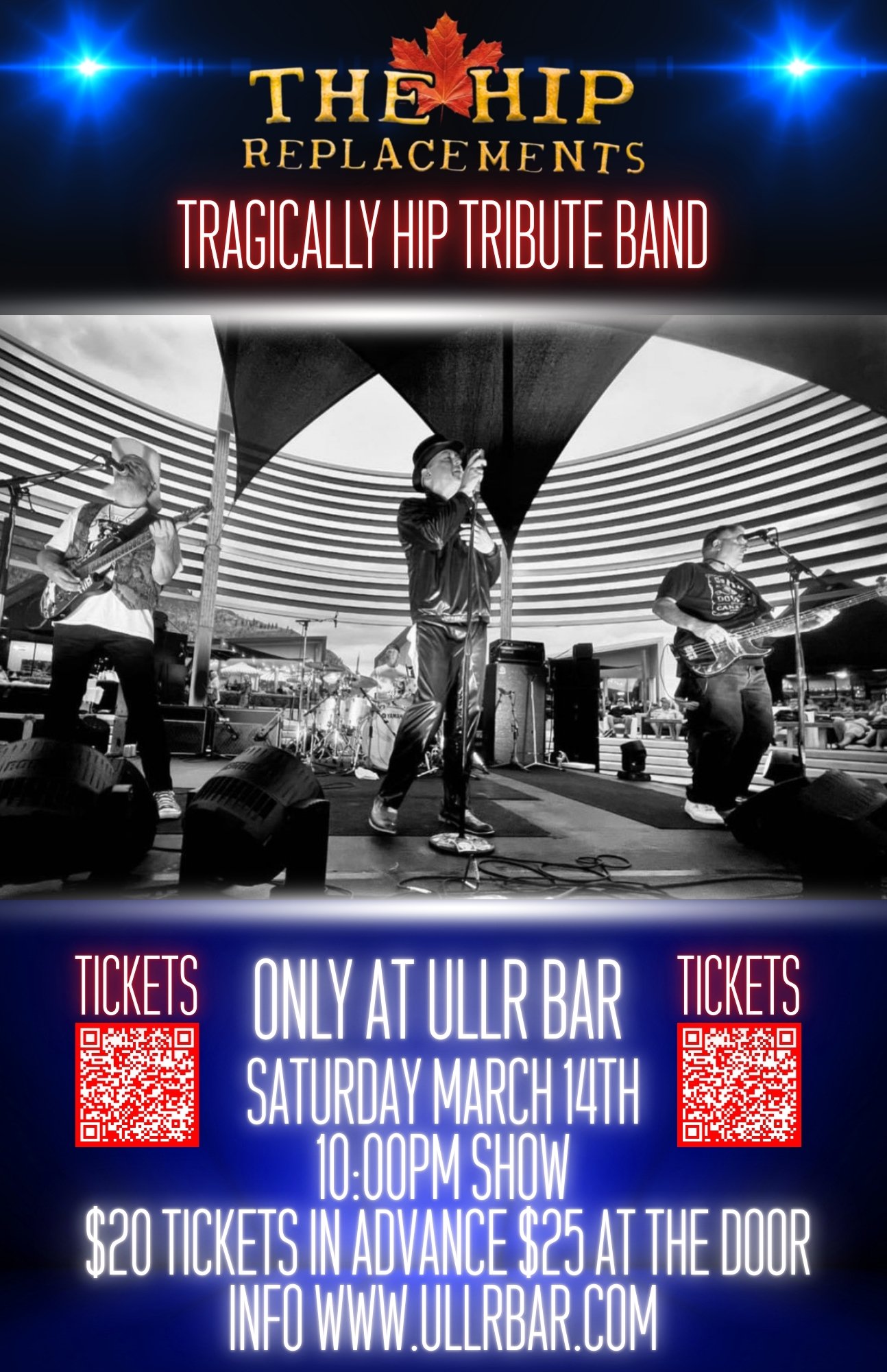 The Hip Replacements Back at Ullr Bar Come join us for a night of groovy tunes as The Hip Replacements take the stage at Ullr Bar! Get ready to dance the night away to all Tragically Hip classic hits. This in person event is not to be missed! Grab your friends, grab a drink, and let’s make some unforgettable memories together. See you there!