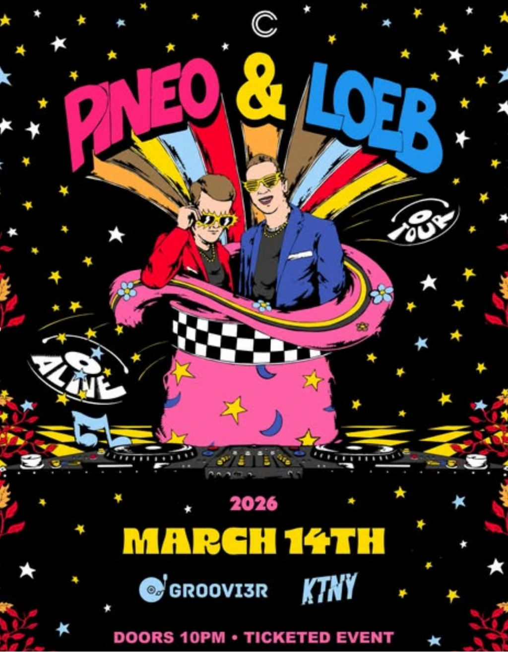PINEO & LOEB land at The Central on Friday, March 14th, 2026 for a full-send night of high-octane house and genre-blending party energy. Known for high-octane sets that fuse dance with hip-hop + rock flavor, they’ve built a worldwide reputation from major festival stages to packed club rooms.