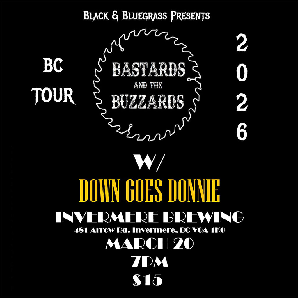 Join us on March 20 for an evening of great live music, good beer and good vibes when the Bastards and the Buzzards stops at the brewery on their BC Tour, with guests Down Goes Donnie presented by Black & Bluegrass.