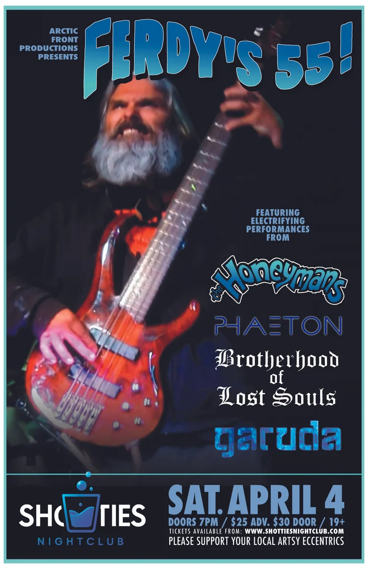 Arctic Front Productions presents FERDY’S 55!, a special night celebrating a man who has spent decades shaping and supporting the live music scene in the Kootenays.