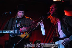 Closing a great night of railway rock, The Sumblers Inn (comprised of three brothers and a childhood friend) delivered a high-voltage performance for the lucky remaining crowd. Graham, the barefoot bass player, slapped his strings, while Alec sat (due to an injury) centre stage, asking us to “please drop your brain off at the door”. Jeff contributed ambient organs in their 1st song, the haunting vibrato taking the rest of the evening for a psychedelic turn. Posted: May 24, 2009