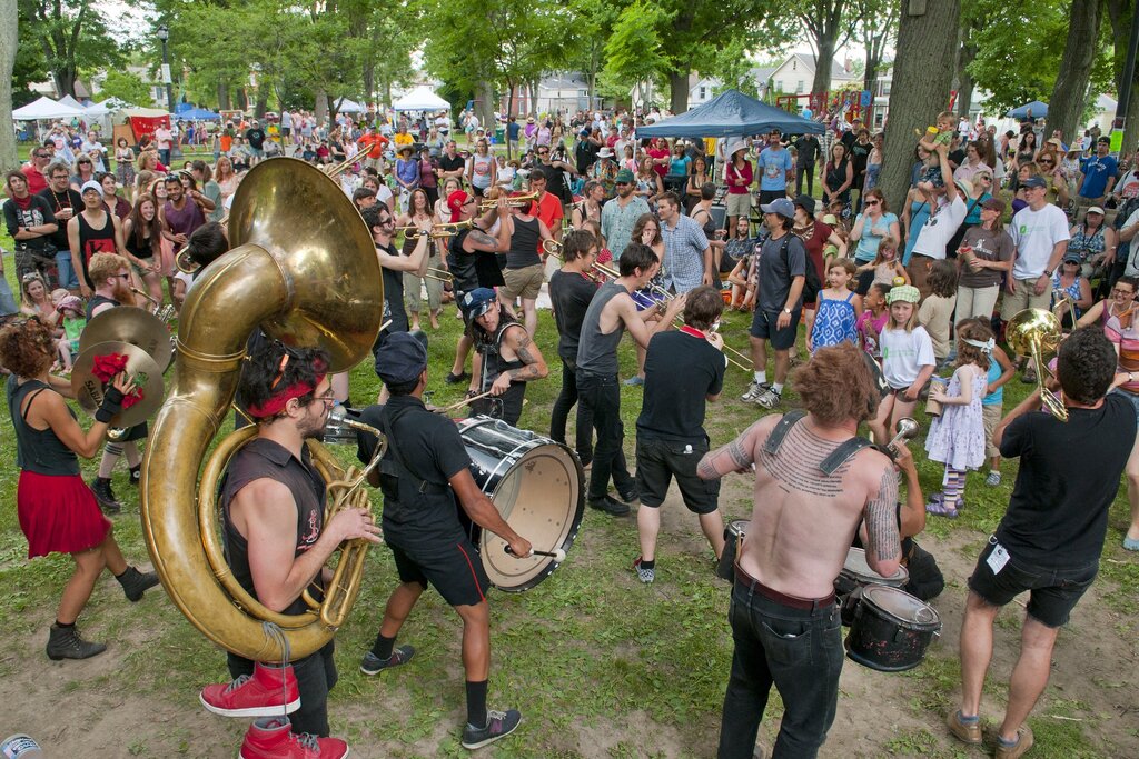 The headliners for this year’s festival includes the JUNO-nominated group Kobo Town, Anishinaabe-Canadian alt-rock band, Status Non Status, Kingston-Iranian Santur player, Sadaf Amani, reggae band, The Human Rights, the alt-country singersongwriter Justin Rutledge, the Undertow Brass Band, who will lead the annual Porch Jazz Parade through the Skeleton Park neighbourhood, and the Department of Illumination, who will lead family activities in the park including a giant boxtopia pirate ship!