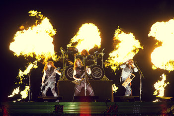 LiveVan: In the music video for “Külmking”, a song from your latest album, we see images of: a group of nude female bathers hunted down one by one and snared by a large hook; a roving pack of marauders in animal pelts; the band performing on an elevated platform in a field, backed by some impressive pyrotechnics – what's all going on there?!