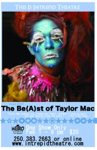 New York singer/drag artist/activist Taylor Mac appears at the Metro Studio Feb 1/09 only. Visit www.taylormac.net for video and audio. Visit intrepidtheatre.com for performance details and tickets.