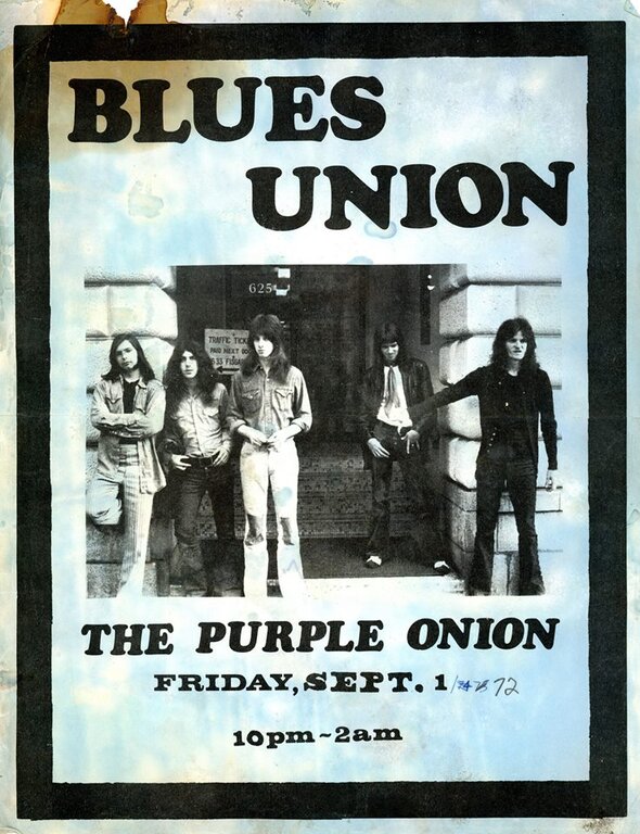 The first version of Blues Union embraced "British Blues" and modern blues artists much more while the Blues Union- #2 was heavily influenced by time-tested Chicago Blues, the bulk of its material being as such. Blues Union-1 featured songs like 'Stroll On' by the Yardbirds, 'She Caught The Katy' by Taj Mahal and it's big set-closer 'Boogie Chillen' by John Lee Hooker. The band had a huge run at The Purple Onion in Victoria, filling the place, Friday & Saturday nights, for several weeks.