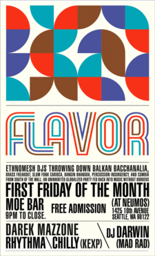 Arrive hungry - FLAVOR is every first Friday of the month at the Moebar.