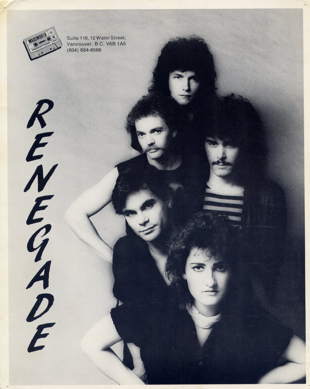 Renegade started in 1983 with the lineup of Sue Medley (vocals) Jim Buckshon (bass/vocals) Rob Pettigrew (guitar/vocals) Mark Gajb keyboards and Keith Sharp on drums. The band toured around BC for a year or so until singer Sue Medley left to have her tonsils removed. The group subbed in singer Steve Foster, who was a bartender in Victoria and impressed the band when he came up and sang one song. Renegade kept Foster, and changed Pettigrew to Ross Damude. That lineup eventually stopped touring later that year. Sue Medley later went on to become signed to Polygram Records.