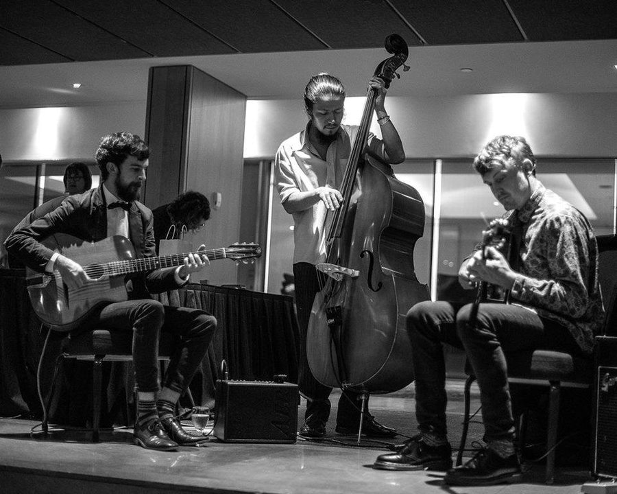 The Tree Top Trio are the house band at the Moka House Cafe in Cook St. Village. They have performed at the Ecostar Awards Ceremony, an auction for the Hospital Foundation, farmers markets, book launches, the Northern Quarter, art galleries, restaurants, and the 2017 Victoria Djangofest.