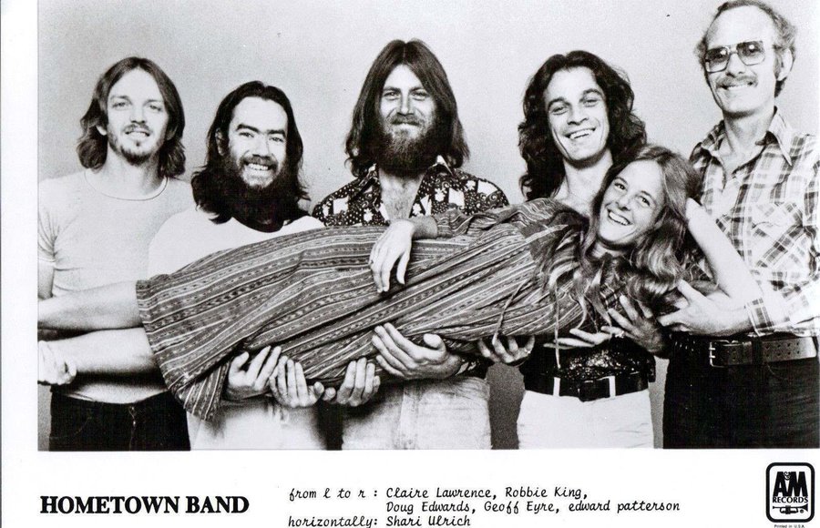 The Hometown Band was founded in 1975 by Claire Lawrence, a former member of The Collectors and Chilliwack, as the back-up group for Canadian folk artist Valdy. The band comprised Shari Ulrich (lead vocals, flute, fiddle), Geoff Eyre (drums, vocals), Robbie King (organ, piano, keyboard bass), and Doug Edwards (guitar, keyboards, bass).