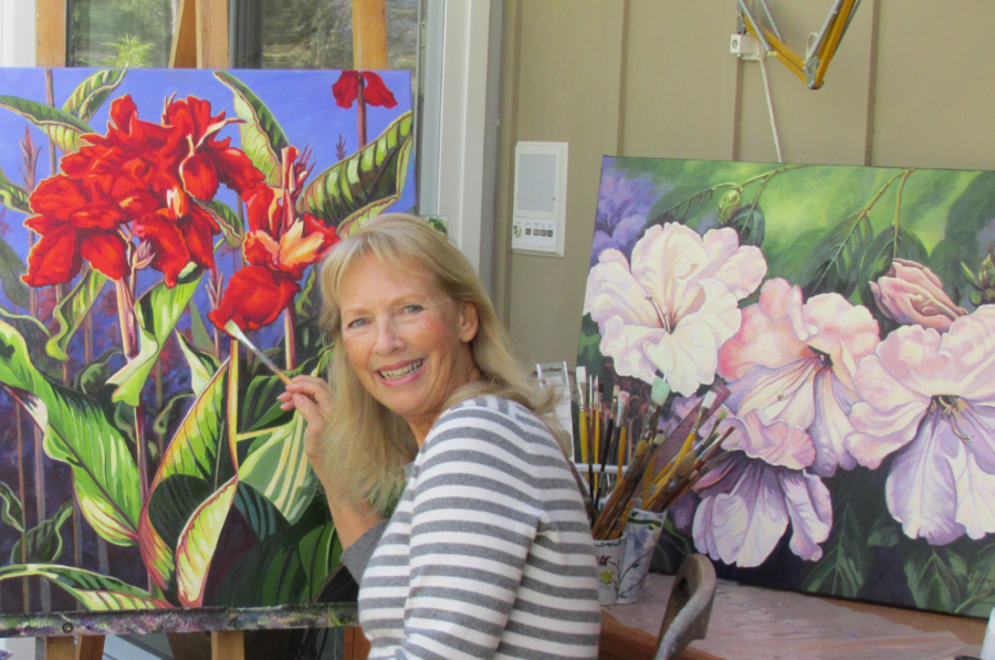 Joane now resides in Cobble Hill on Vancouver Island. When she is not painting she is usually in her garden. This is a place that inspires her and it is obvious in her art. Joane’s garden has also hosted many art shows.