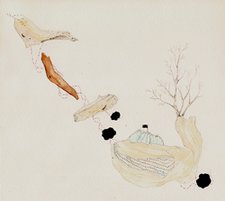 When divulging the meaning of her work Carine is hesitant to reveal too much. She believes that the viewer’s role in interpreting her art lends itself to a childlike process of discovery she hopes to expound. Working primarily with drawing media on paper, the artist constructs what she deems biological landscapes infused with ‘psychological symbols’ derived from dreams.
