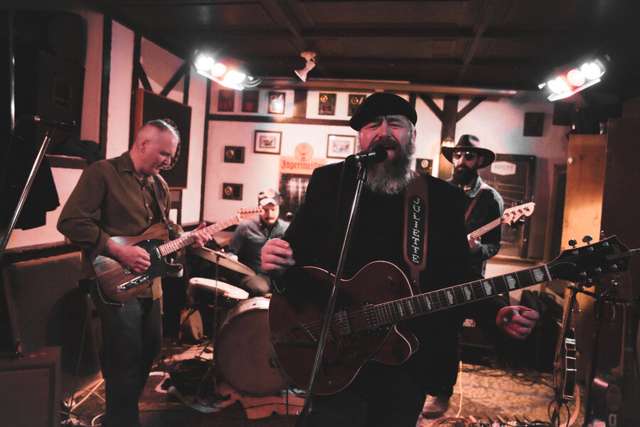 Hellhound Trail is a blues-rock band from Kingston, Ontario, blending surf and roots, swampy blues, and gritty rock into a sound that’s raw, honest, and full of energy. Cousin Jeff fronts the band with soulful vocals and howling slide guitar. Uncle Brandon brings in surf-style leads. Old Man Lôg holds it steady on bass, and Spring Heeled Mat adds depth and heart on drums and percussion. Their first two EPs show off their unique sound, and they’re currently working on new songs for a full-length album. The band recently performed at Ottawa Bluesfest, and earlier this year frontman Cousin Jeff (Dunn) represented the Ottawa Blues Society at the International Blues Challenge in Memphis.
