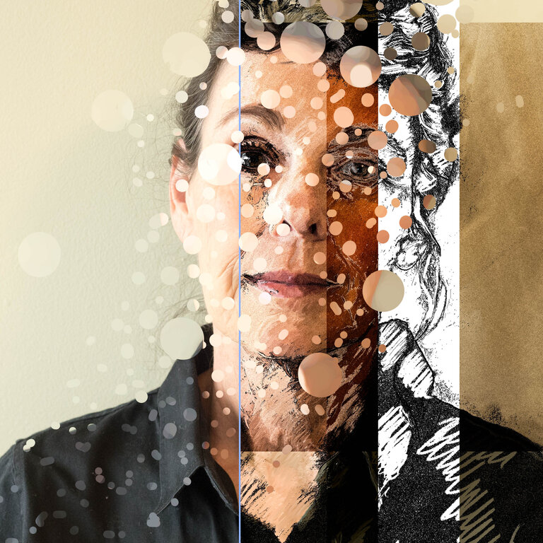 Anne McCarthy is interested in the inclusion of photography into digital art. There is a sense of distance between a photograph and the human hand and heart that feels unsatisfactory. Her work is created primarily with digital tools before becoming tangible in print.
