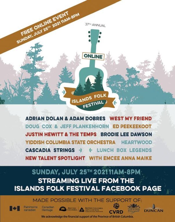 The Cowichan Folk Guild will proudly present the 37th Islands Folk Festival July 25, 2021 Streaming Live from Providence Farm in Duncan, BC. Music lovers from all over Vancouver Island and the Gulf Islands are invited to join this celebration of music, featuring all the best elements of a homegrown folk festival. We are the most family friendly festival in Canada!