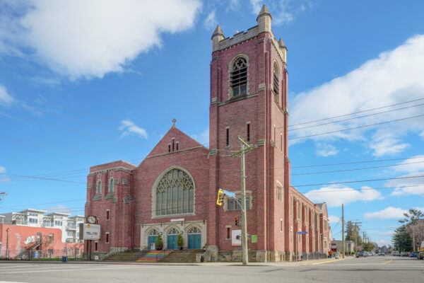 The handsome red brick First Met church building in downtown Victoria, BC, is available for both one-off event space rentals and for ongoing commercial space rental.