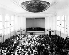 The historic Old Auditorium (left), one of the early buildings on campus (from the 1920's), is currently undergoing restoration. Until recently, this 600-seat facility was used for large-ensemble concerts and opera productions. In the mean time, the Old Auditorium's hall and rooms are used for rehearsals, teaching studios and offices. Official reopening events are scheduled for October 2010.
