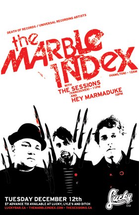 Universal/Death of Records recording artists The Marble Index make their much-anticipated return to the Island, with Vancouver's The Sessions and Vic's own Hey Marmaduke. Advance tix at Lucky, Lyle's, and Ditch. www.themarbleindex.com www.thesessions.ca