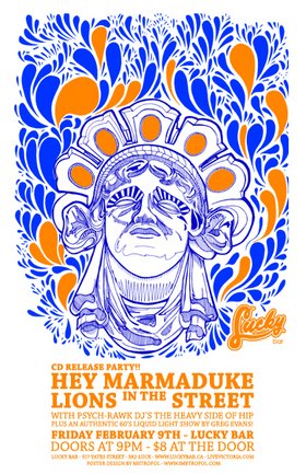 It's a night of Psyche Rock with Vic's Hey Marmaduke celebating the release of their new CD "4". With Vancouver's Lions In The Street (formerly The Years). PLUS, The Heavy Side of Hip DJs playing psychedelia, AND an authentic Acid Light Show by Greg Evans. www.myspace.com/heymarmaduke www.lionsinthestreet.net