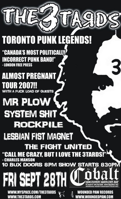 The 3Tards, Mr. Plow, System Shit, Lesbian Fist Magnet, ROCK PILE, THE FIGHT UNITED @ The Former Cobalt Sep 28 2007 - Feb 6th @ The Former Cobalt