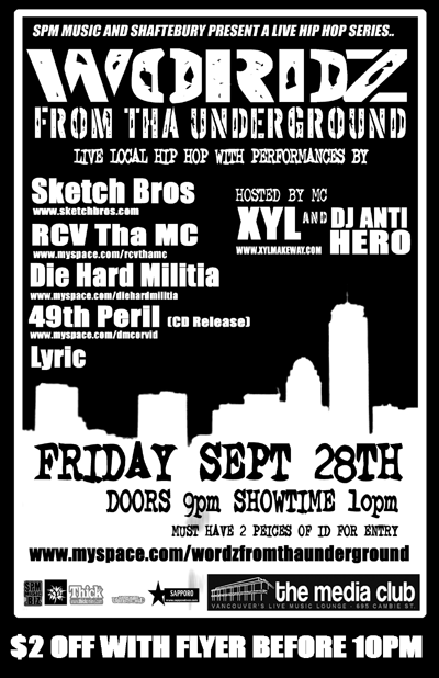 WORDZ FROM THA UNDERGROUND: Sketch Bros., RCV Tha MC, Die Hard Militia, 49TH PERIL, lyric, Hosted By XYL @ The Media Club Sep 28 2007 - Dec 23rd @ The Media Club