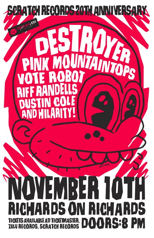 Scratch Records 20th Anniversary, Destroyer, Vote Robot, Pink Mountaintops, Riff Randells, Dustin Cole, Hilarity!, with special guests