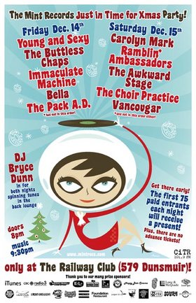 Mint Records' annual holiday funfest! Friday: Young and Sexy, The Buttless Chaps, Immaculate Machine, Bella, The Pack AD -- and Kellarissa opening! Saturday: Carolyn Mark, Ramblin' Ambassadors, The Awkward Stage, The Choir Practice, Vancougar -- and Hot Panda opening! (Bands not in this order!) Come early! First 75 paid entrants each night receive a free gift! Info: www.mintrecs.com ***A benefit for the PHS Community Services Society***