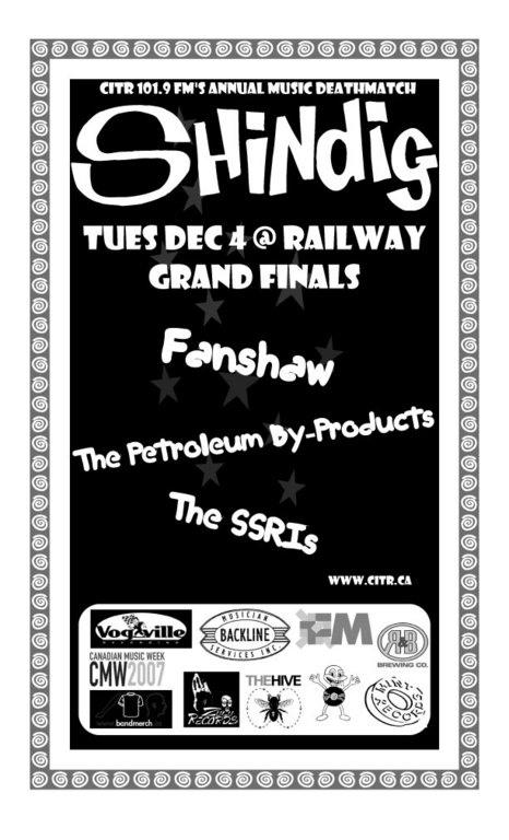 SHINDIG 2007 FINALS: The SSRIs, Petroleum By-Product, Fanshaw @ Railway Club Dec 4 2007 - Feb 6th @ Railway Club