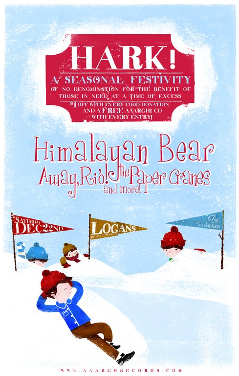 A lovely festive festivity! Everyone who comes gets a FREE copy of the Hark! Seasonal Sampler (featuring some released an unreleased stuff from Chet, Himalayan Bear, Away, Ri'o! & Colourbook), as well as many other giveaways.