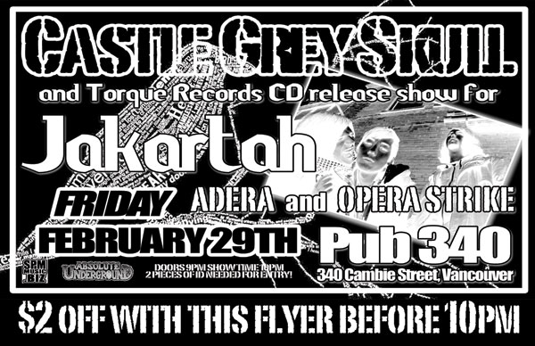 castle grey skull, jakartah, ADERA, Opera Strike @ Pub 340 Feb 29 2008 - Feb 6th @ Pub 340