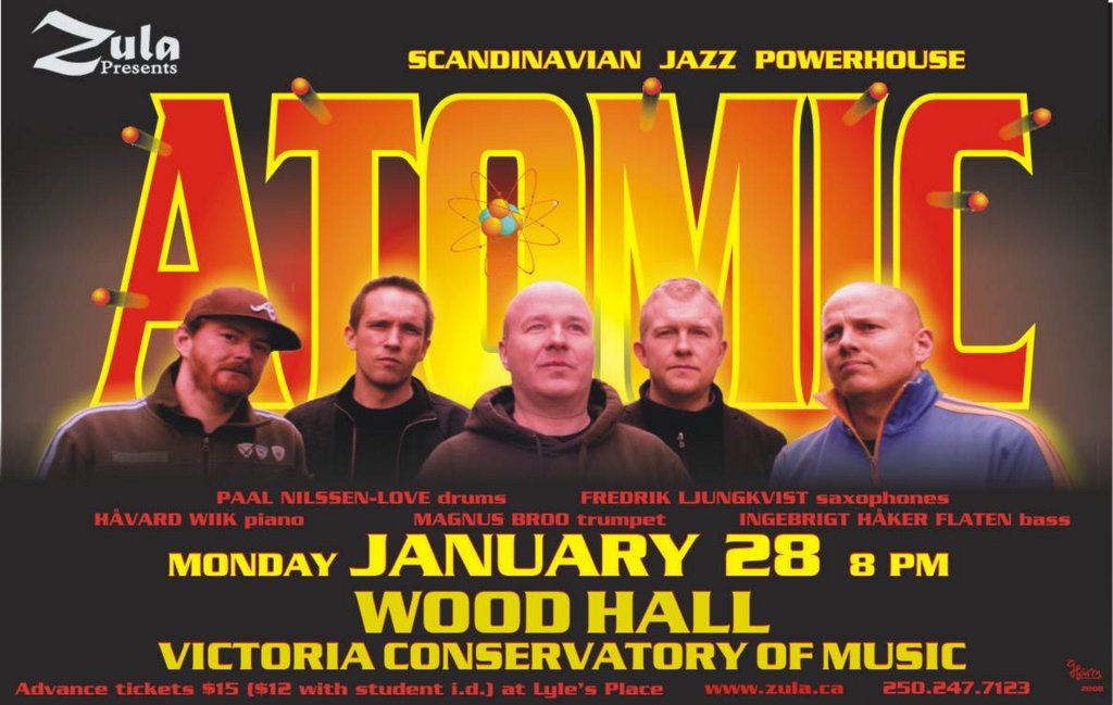 Scandinavian Jazz Powerhouse: Atomic @ Robin and Winifred Wood Recital Hall - Victoria Conservatory of  Jan 28 2008 - Feb 8th @ Robin and Winifred Wood Recital Hall - Victoria Conservatory of