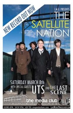 . Saturday, March 8th I.M.U. presents The SATELLITE NATION w/ special guests UTS & The LAST SCENE @ The Media Club, 695 Cambie. Doors 9pm, $10 Advance - Purchase advance tickets online @ http://www.imuproductions.com . $12 @ the door