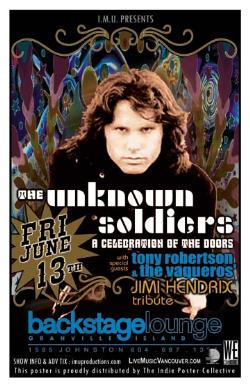 . Friday, June 13th I.M.U. presents The UNKNOWN SOLDIERS: A Celebration Of The Doors with special guests Tony Robertson & The Vaqueros' JIMI HENDRIX Tribute @ The Backstage Lounge, Granville Island (1585 Johnston) - Purchase advance tickets online @ www.imuproductions.com