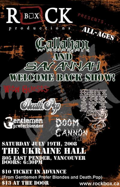 All-ages w/BEER GARDEN!!!: Callahan, Savannah, Death.Pop, Ignite The Sea, Doom Cannon @ The Ukrainian Hall Jul 19 2008 - Feb 7th @ The Ukrainian Hall