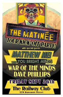 . Friday, Sept 26th I.M.U. presents The MATINEE Tour Kick-off Party w/ MATTHEW MEI & YOU BRIGHT MINDS Tour Homecoming w/ WAR OF THE MINDS & DAVE PHILLIPS @ The Railway Club, 579 Dunsmuir