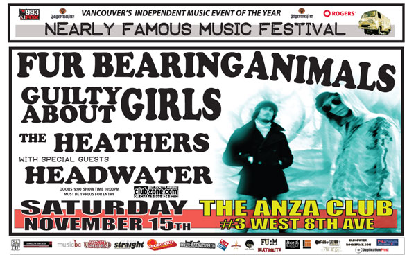 Fur Bearing Animals, Guilty About Girls, The Heathers, Headwater  @ The Anza Club Nov 15 2008 - Feb 4th @ The Anza Club