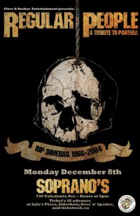 Anniversary in memory of Dimebag Darrell's death: Regular People, The Whiteboard Project @ Soprano's Dec 8 2008 - Feb 6th @ Soprano's