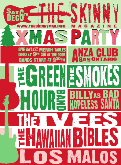 The Skinny Magazine's Xmas Party!!!: Hawaiian Bibles, The TVees, Los Malos, The Green Hour, The Smokes, Bill Hopeless  @ The Anza Club Dec 6 2008 - Feb 5th @ The Anza Club
