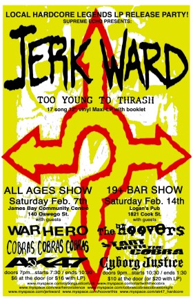 Release party for JERK WARD "Too Young To Thrash" 17 song 12" vinyl Maxi-LP (1981-84) featuring an all-star line-up of Steve McBean, Ricky Long, Kev Smith, Rob Nesbitt, and John London.