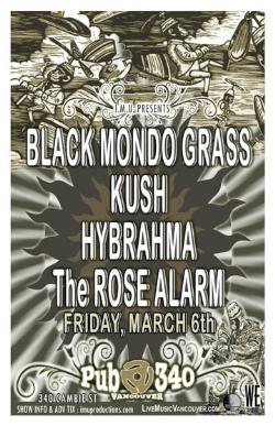 . Friday, March 6th IMU presents BLACK MONDO GRASS, KUSH, HYBRAHMA & The ROSE ALARM @ PUB 340, 340 Cambie Street . Doors 8pm / Purchase advance tickets directly via the bands & online @ www.imuproductions.com