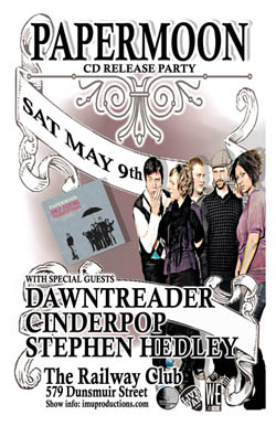 . Saturday, May 9th IMU presents PAPER MOON CD Release Party w/ special guests DAWNTREADER, CINDERPOP & STEPHEN HEDLEY @ The Railway Club, 579 Dunsmuir