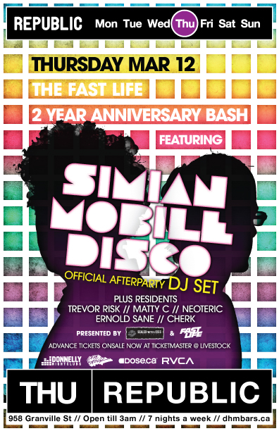 Official Afterparty for SMD at the Commodore: Simian Mobile Disco, Fastlife DJs @ Republic Dec 31 1969 - Feb 6th @ Republic