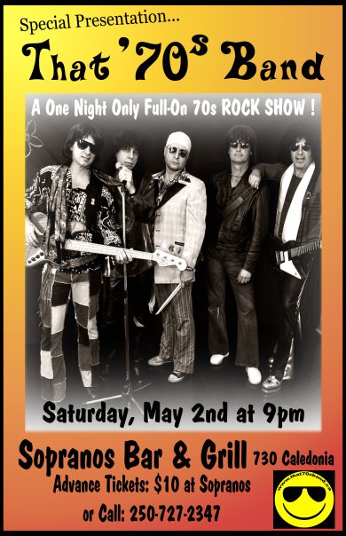 Lets keep Victoria live music rocking. Come on out to see THAT70SBAND kick ass in a rare small venue club show with full production stage show! For tickets call 727-2347
