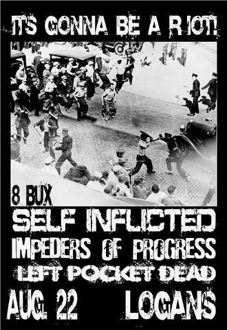 HARDCORE METAL and PUNK!!!: SELF INFLICTED, IMPEDERS OF PROGRESS, Left Pocket Dead @ Logan's Pub Aug 22 2009 - Feb 7th @ Logan's Pub