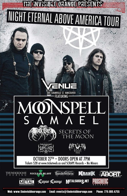 Night Eternal Above America Tour: Moonspell, Divine Heresy, Book of Black Earth, Secrets of the Moon, Muspellheim, Anatolian Wisdom