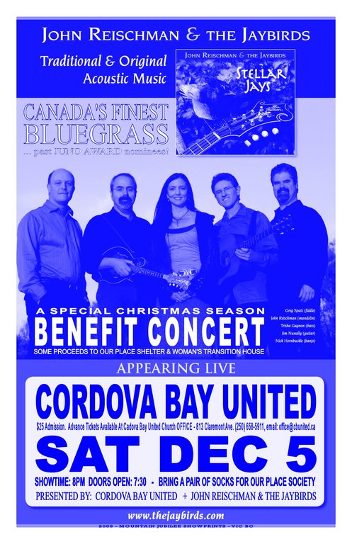 Presented by Cordova Bay United Church and John Reischman & The Jaybirds.