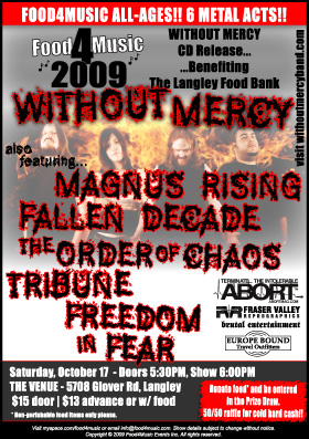 To support the cause, bring a non-perishable food item, which will get you $2 off regular door price of $15, or $13 in advance. Net proceeds will be collected at the door along with food items and will be donated to the Langley Food Bank. Those that bring food items are automatically entered in the prize draw. As well, fans will also have a chance to participate in a 50/50 draw for cash winnings, in which 50% will be donated.