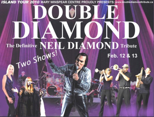 After five previous SOLD OUT shows at the Mary Winspear Centre (Charlie White Theatre) the Victoria based show- DOUBLE DIAMOND returns for another TWO back to back shows Feb. 12 & Feb.13 in 2010 is what many British Columbians consider to be “outstanding” to the “real” Neil Diamond touring shows that they have experienced throughout Canada and the U.S. Many patrons have commented that this show is far more energetic and entertaining than the real thing. Tickets are already selling quickly for the upcoming “double” sizzling performance.