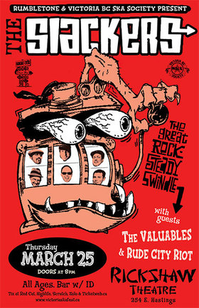 Victoria BC Ska Society and Rumbletone are proud to present the only Slackers BC show on Thursday, March 25th @ the Rickshaw Theatre. This will be an ALL AGES with bar so we expect ANY SLACKERS FANS THROUGHOUT BC AND BEYOND to come out for this one.