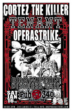 . Saturday, January 16th IMU presents CORTEZ THE KILLER, TENANT, OPERASTRIKE & BROMPTON DISTRESS CALL @ PUB 340, Cambie Street . Doors 8pm / Purchase advance tickets online @ www.imuproductions.com
